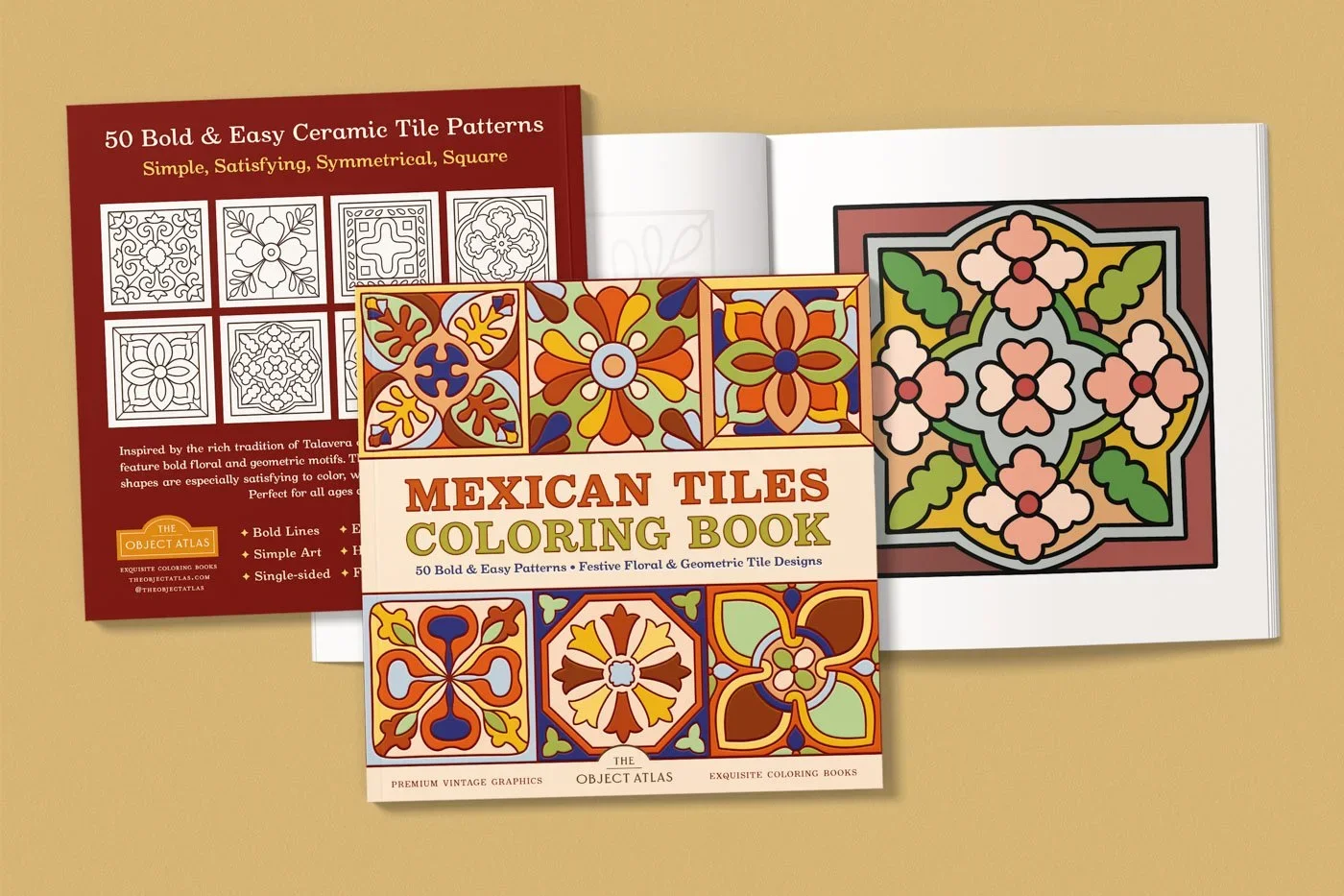 Inspired by the rich tradition of Mexican Talavera ceramic tiles, these festive patterns feature bold and easy floral and geometric motifs. The symmetrical designs and simple shapes are especially satisfying to color, with just the right amount of detail.