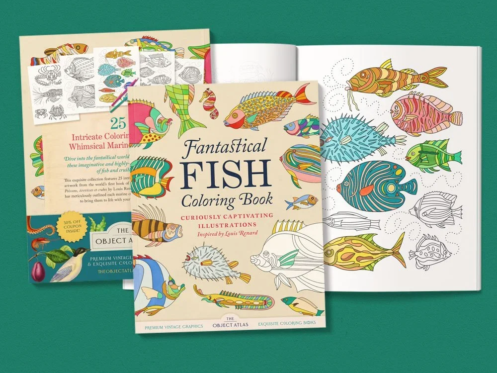 Dive into an enchanting nautical world! This exquisite collection features 25 highly-detailed coloring pages based on artwork from the world’s first book of colored sea life illustrations: Poissons, écrevisses et crabes by Louis Renard (1718). The Object Atlas has meticulously outlined each marine creature by hand, inviting you to bring them to life with your own vibrant colors.